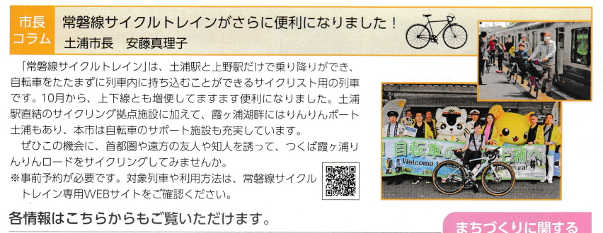 土浦市と周辺、霞ヶ浦つくばりんりんロードなどで、のんびりと自転車に乗りませんか。 私たちは自転車道はもちろん,市街地や農村部で、のんびり、ゆっくり、ゆったり、景色を楽しみながら自転車を乗る人を増やしたい。 健康にも環境にも優しい自転車での移動が気軽にできる街をつくりたいと願っています。多様な人たちが自転車で行き交う街を共に目指しませんか。